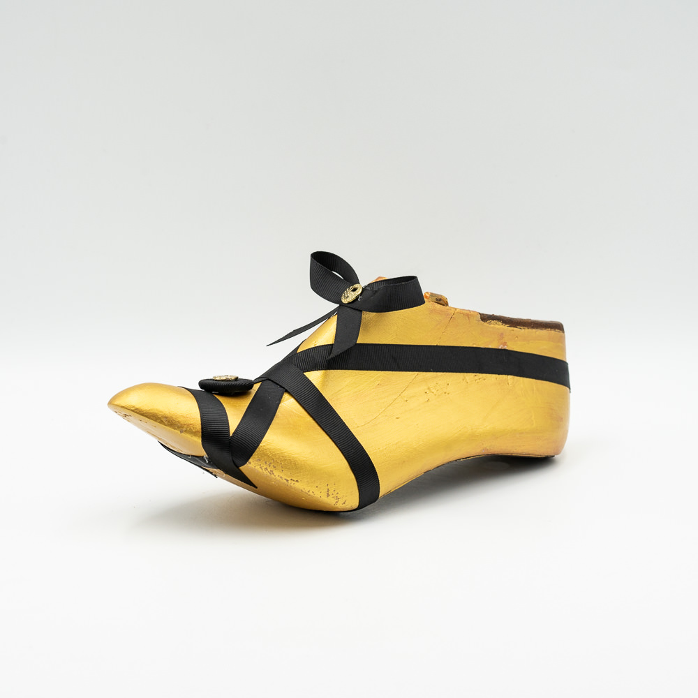 Ξύλινο χρυσό διακοσμητικό με μαύρες υφασμάτινες λεπτομέρειες .