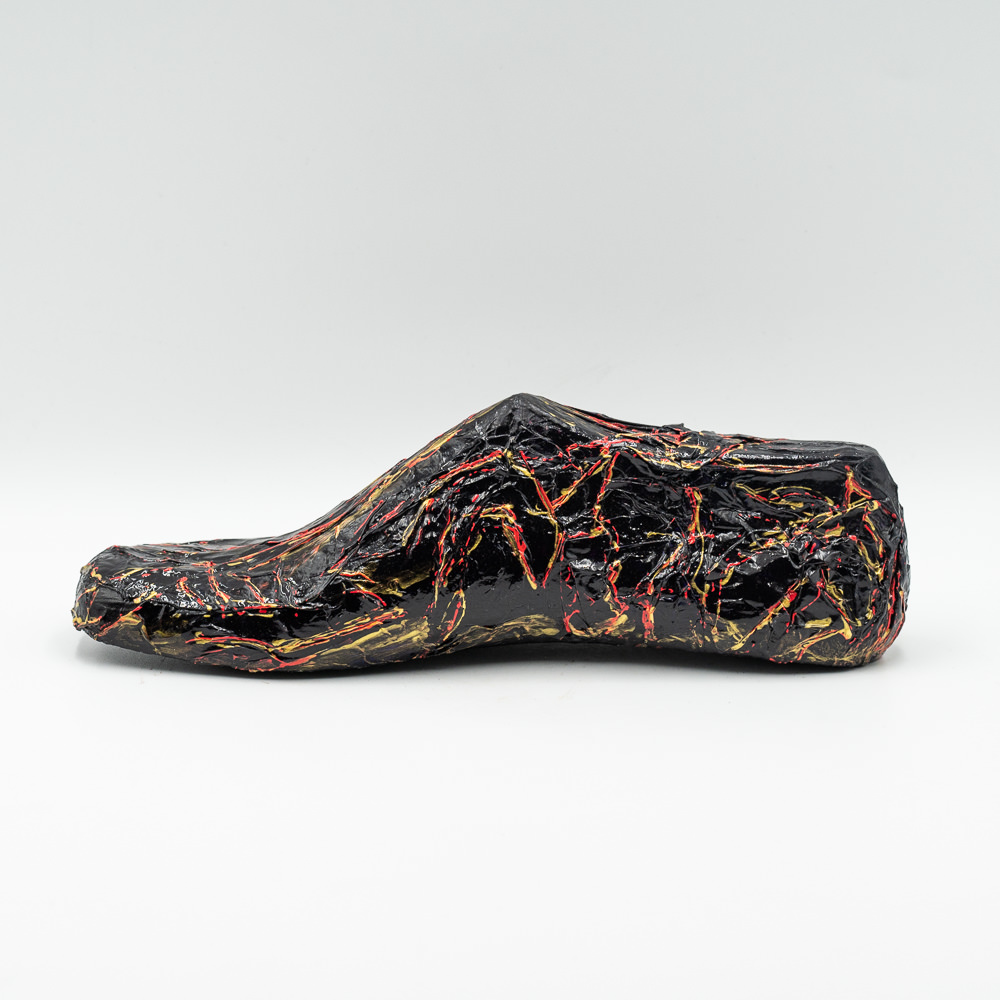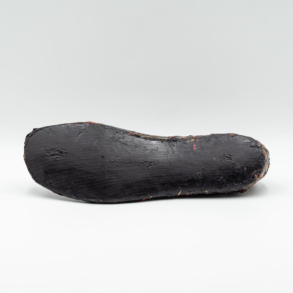 Ξύλινο διακοσμητικό βαμμένο με ακριλικό μαύρο χρώμα , κόκκινες γραμμές.