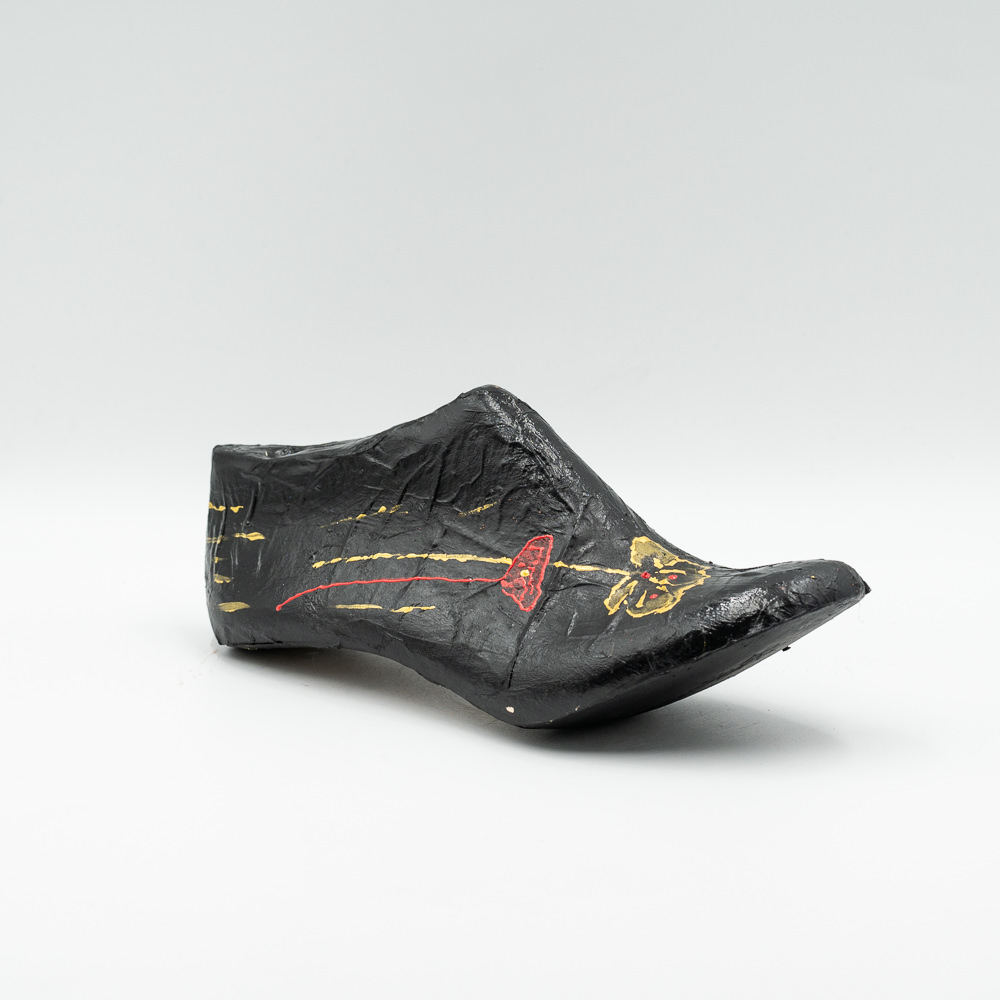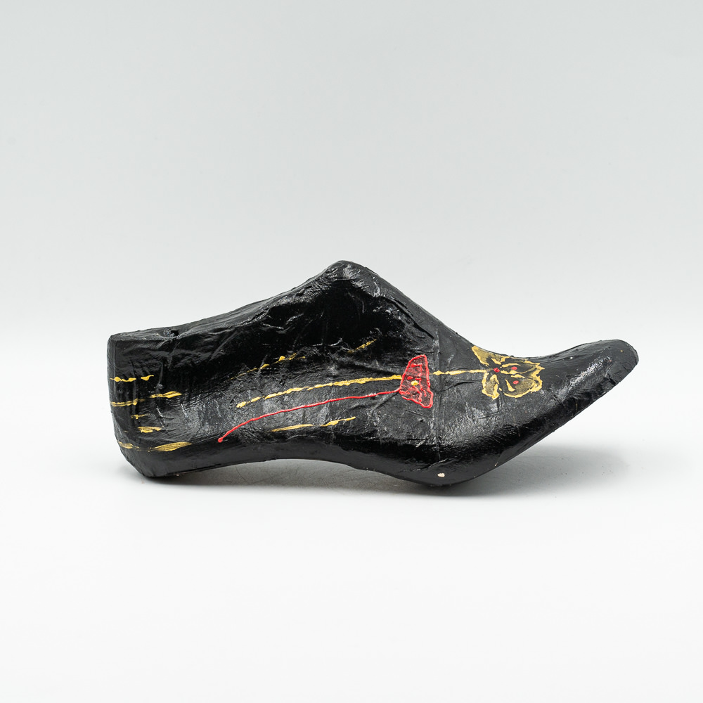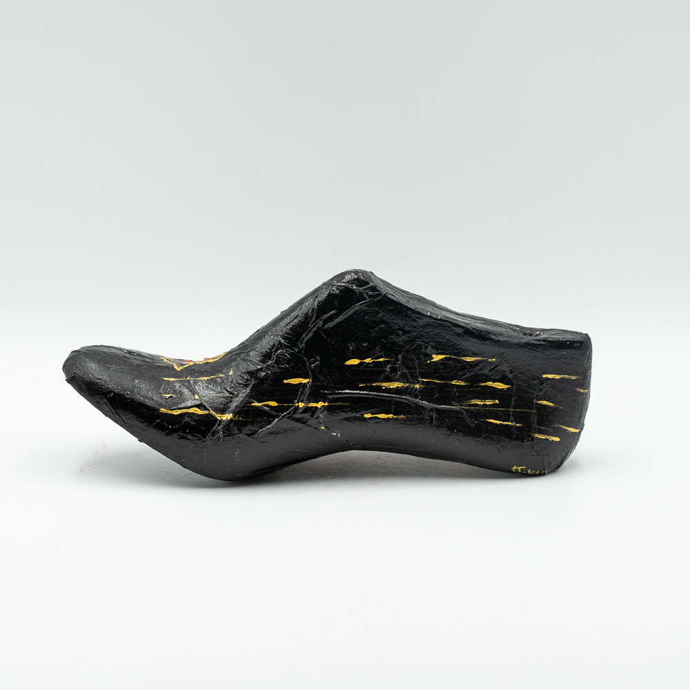 Ξύλινο διακοσμητικό βαμμένο με μαύρο ακριλικό χρώμα και με ένα κόκκινο χρυσό λουλούδι.