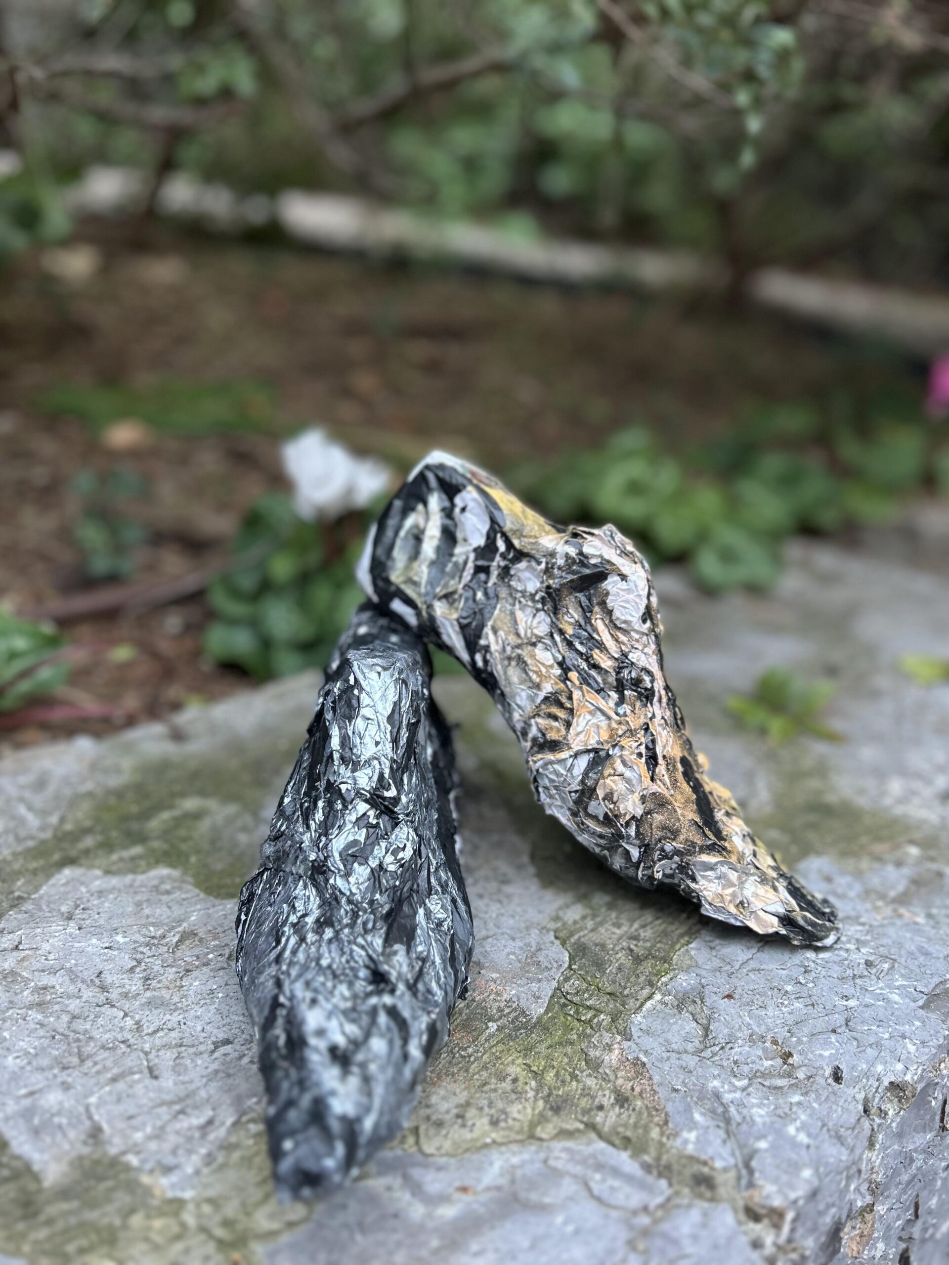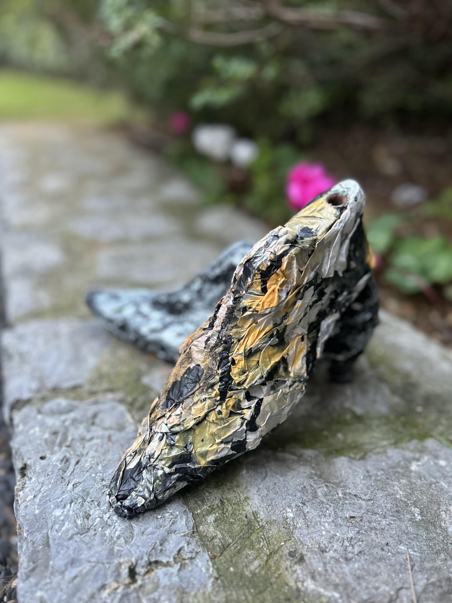 Διακοσμητικό καλαπόδι από PVC. Βαμμένα με ακρυλικό ασημένιο χρώμα αλλά και με μαύρο και χρυσό.