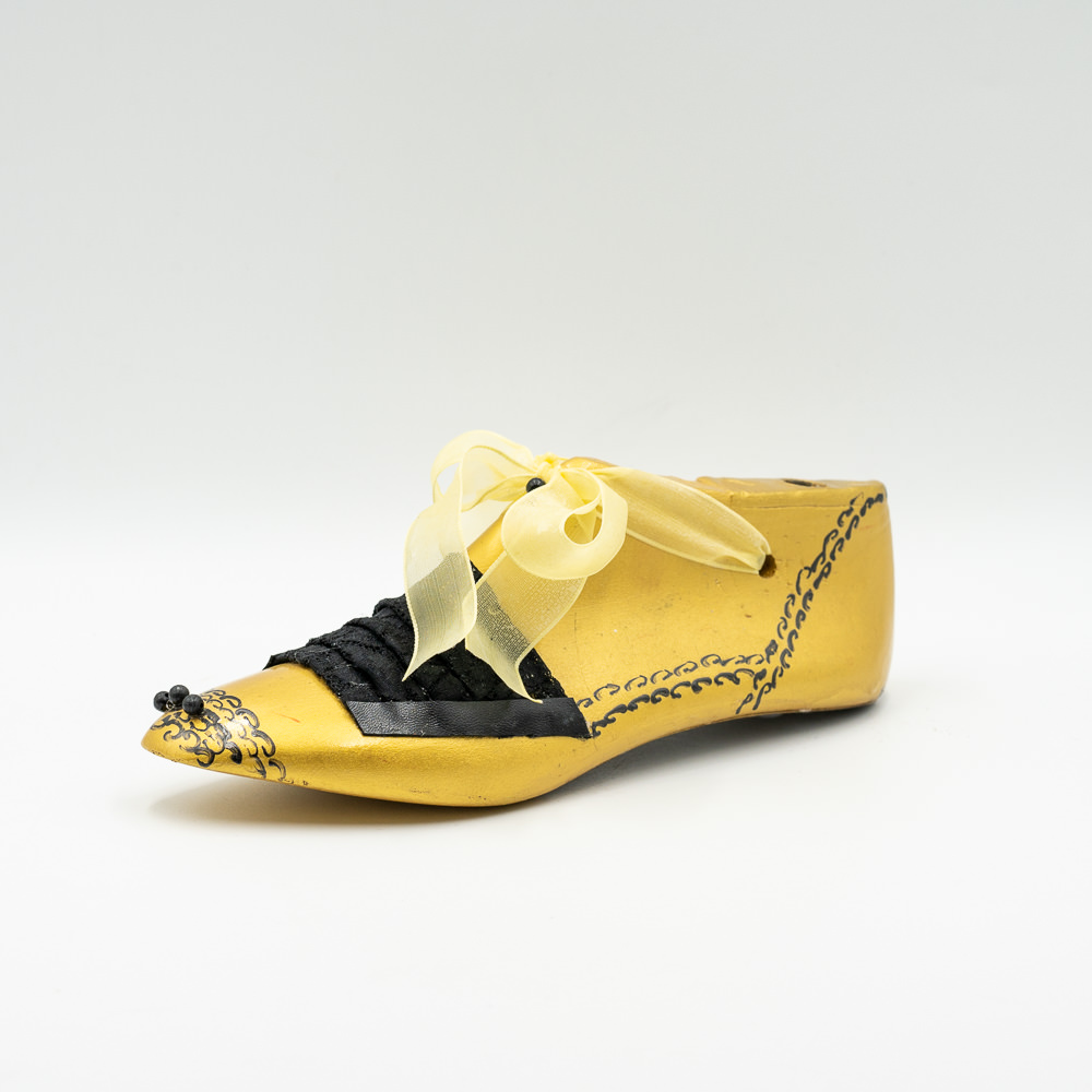 Ξύλινο διακοσμητικό βαμμένο με χρυσό ακρυλικό χρώμα και σατέν κίτρινο φιόγκος.